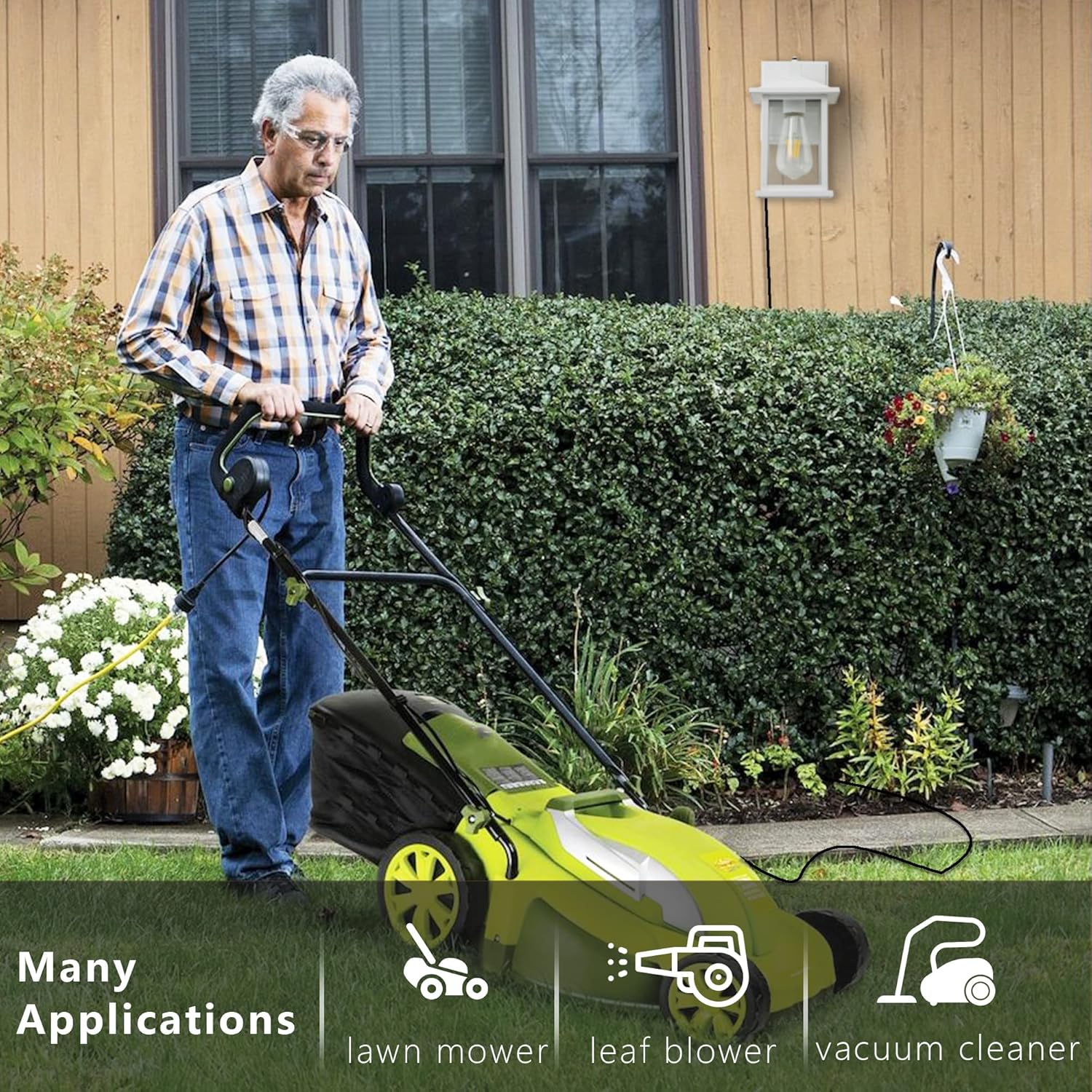 Integrated GFCI Outlet: Equipped with two grounded receptacles (Max 14A / 1080W), this fixture adds safe, convenient access to power outdoors—ideal for holiday lights, yard equipment, or tools.