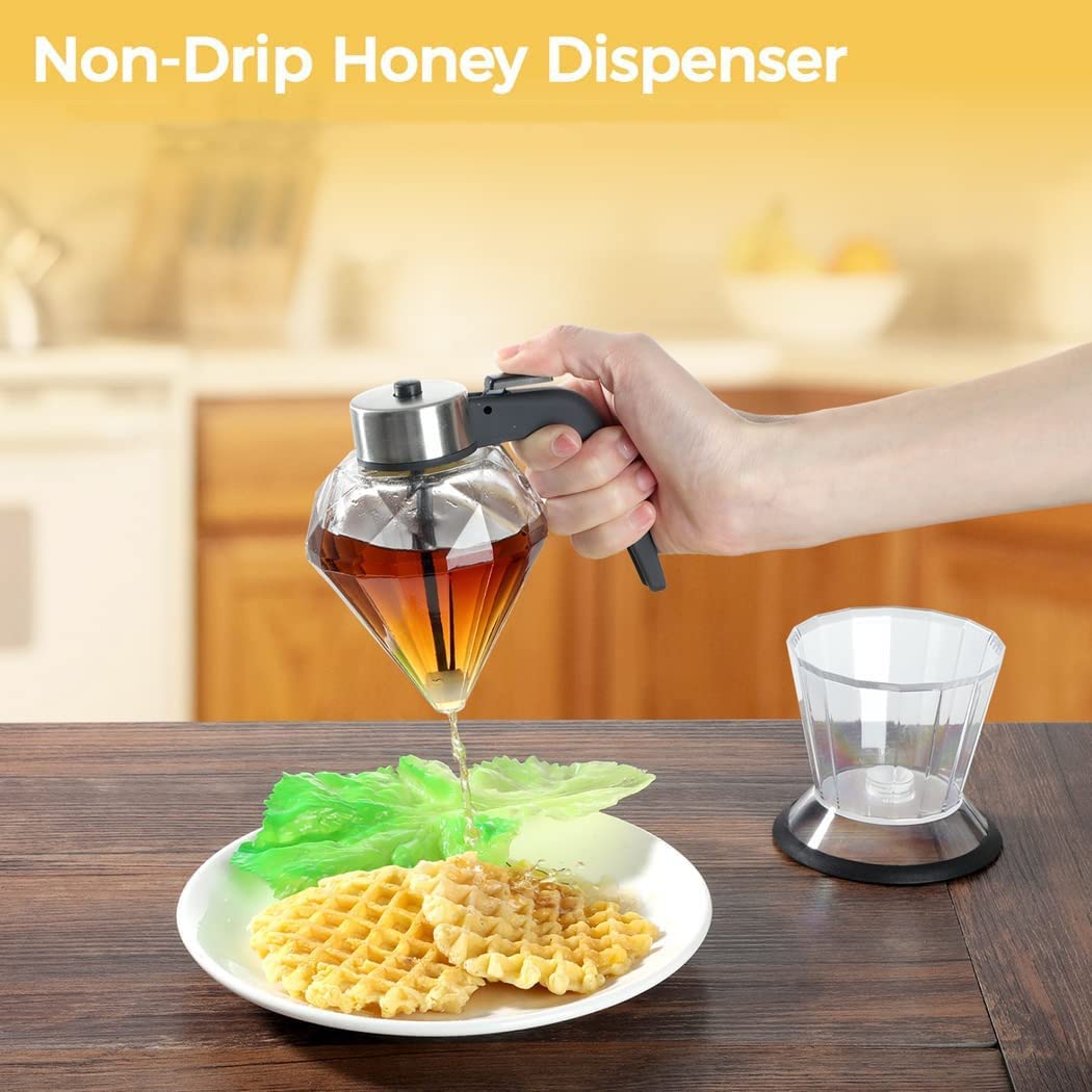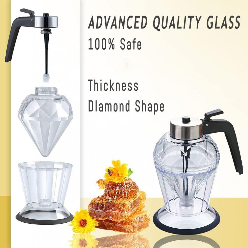 ✨ Elegant Diamond Design: Elevate your kitchen's elegance with our diamond-shaped glass honey dispenser. Its unique aesthetic not only adds a touch of sophistication to your countertop but also sparks conversations during gatherings.