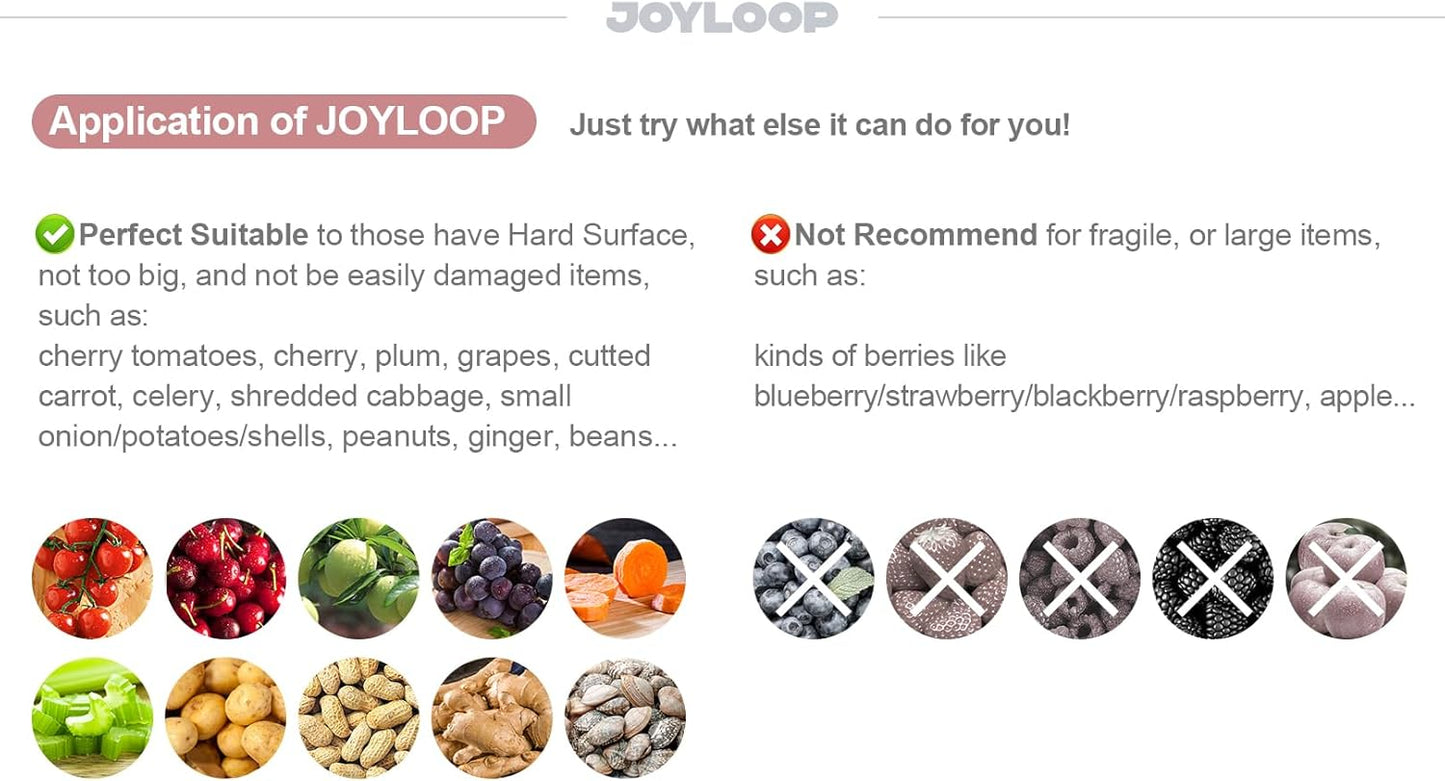 - Innovative Spin Vortex: Turn the crank and let JOYLOOP’s vortex action scrub every fruit quickly and thoroughly