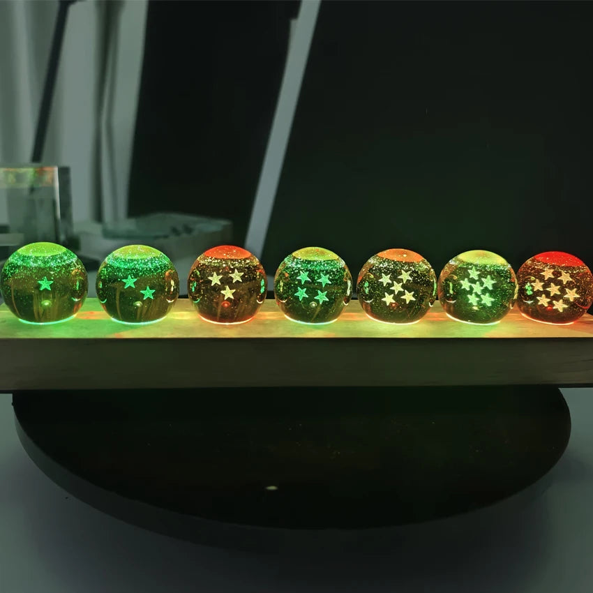 Durable Wooden Base – Stylish and sturdy base complements the glowing crystal balls.