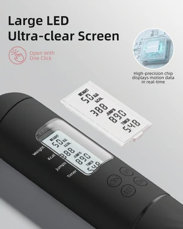 Track your progress in real-time. The integrated LED screen displays your timer, weight, jump count, and calories burned. Just set your weight and get live feedback to help you hit your fitness goals faster and smarter.