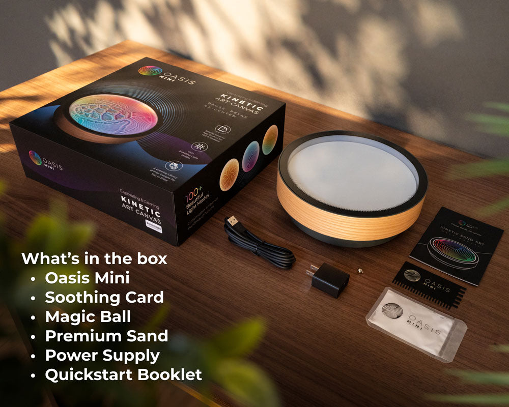 Oasis Mini comes with everything you need to get started with kinetic sand art!