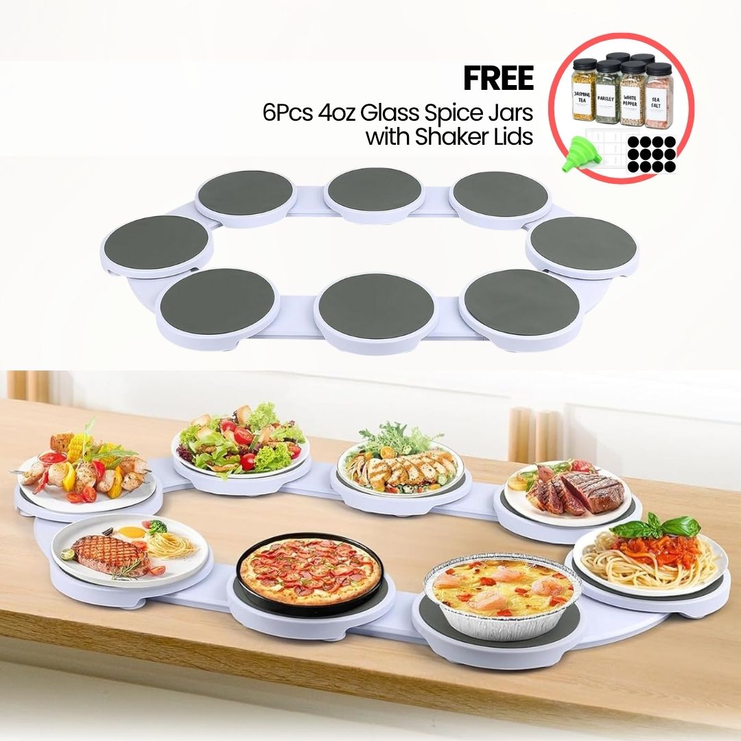 Heat-Resistant & Stable: Durable tray resists heat—move from oven to table seamlessly. Anti-slip surface keeps dishes secure during rotation.